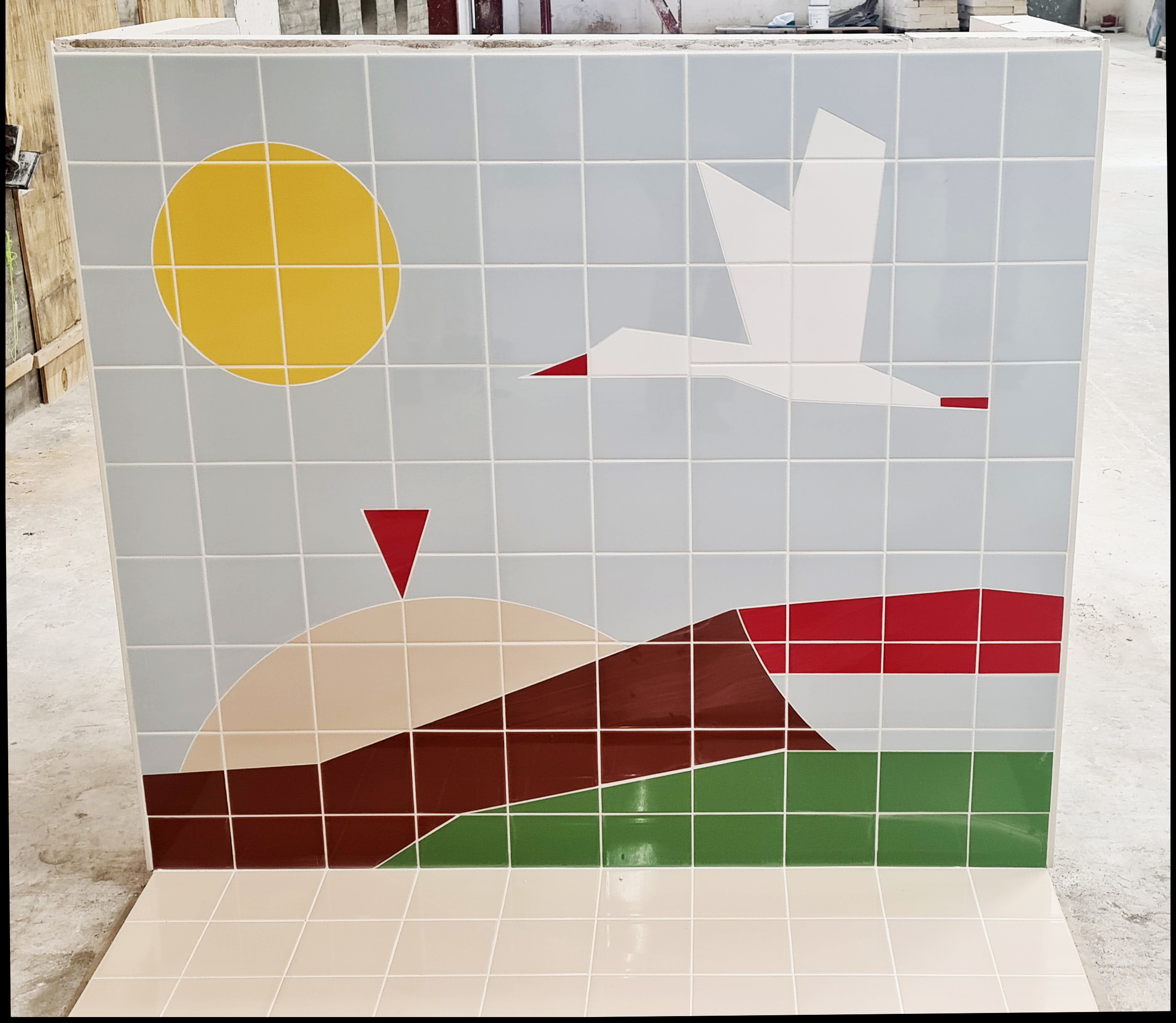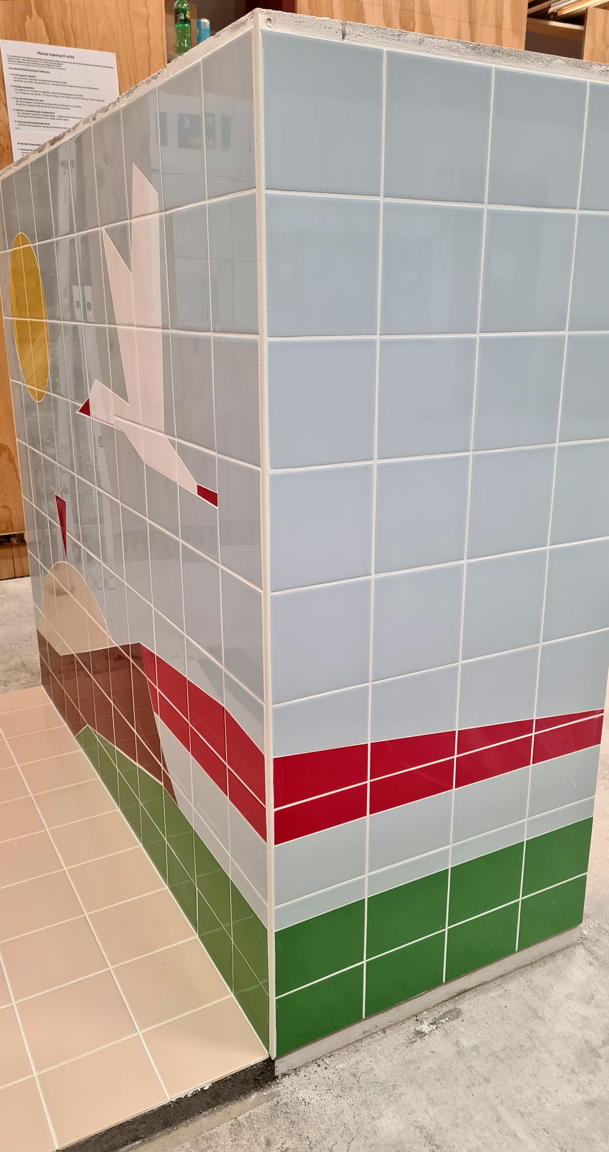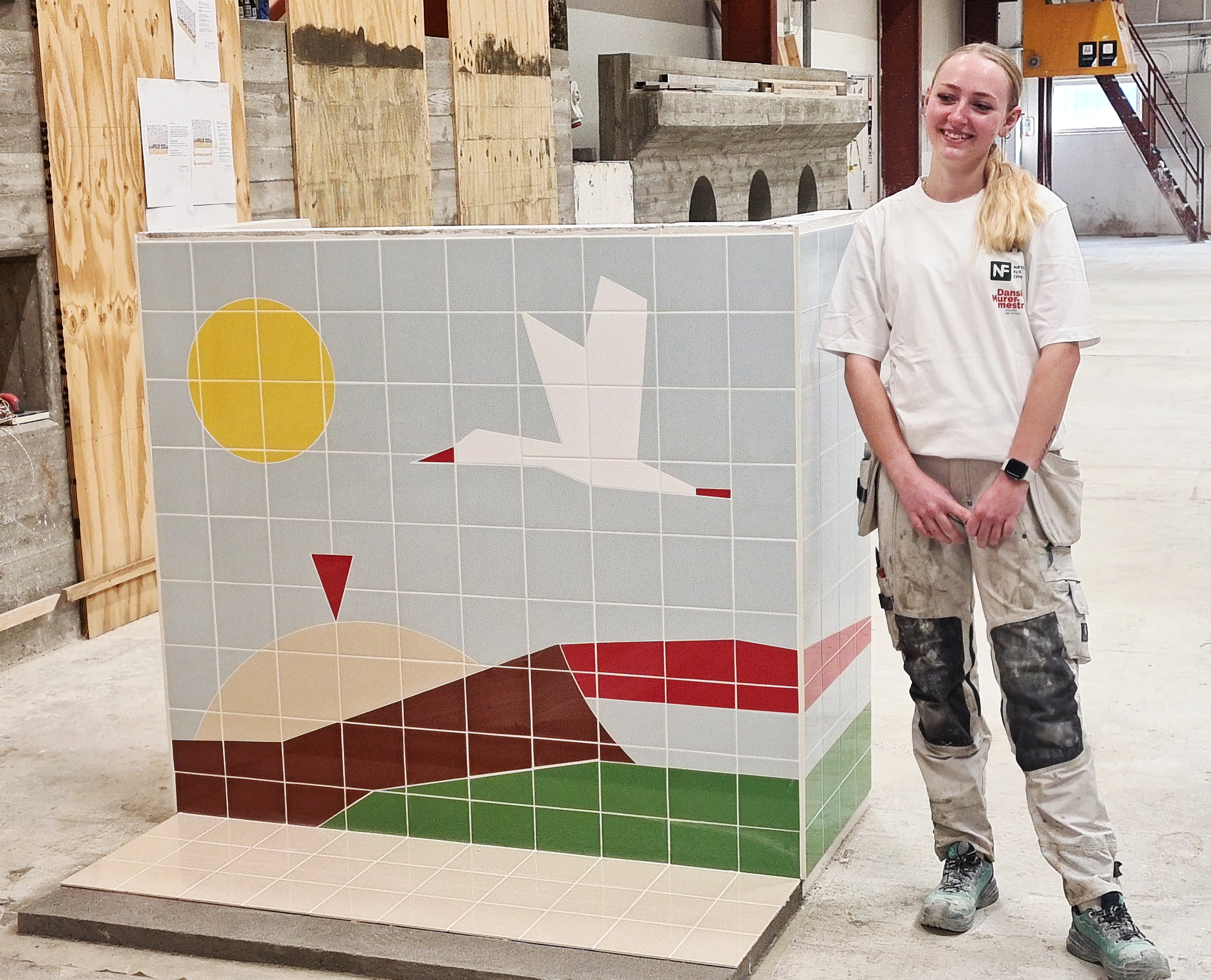 Som man kan se på hendes imponerende værk, har Karoline med stor præcision omsat tegningerne til et flisemuret motiv af højeste håndværksmæssige kvalitet. Det er håndværk udført med koncentration og faglig stolthed.
